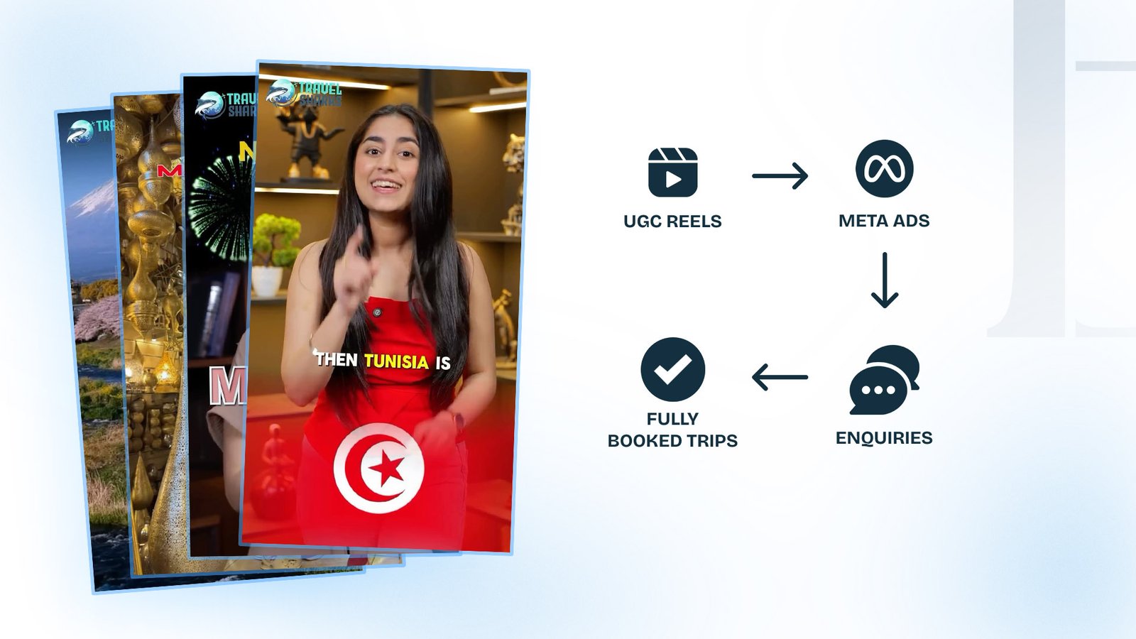A full-funnel Meta Ads and UGC engine designed to turn travel interest into confirmed bookings.